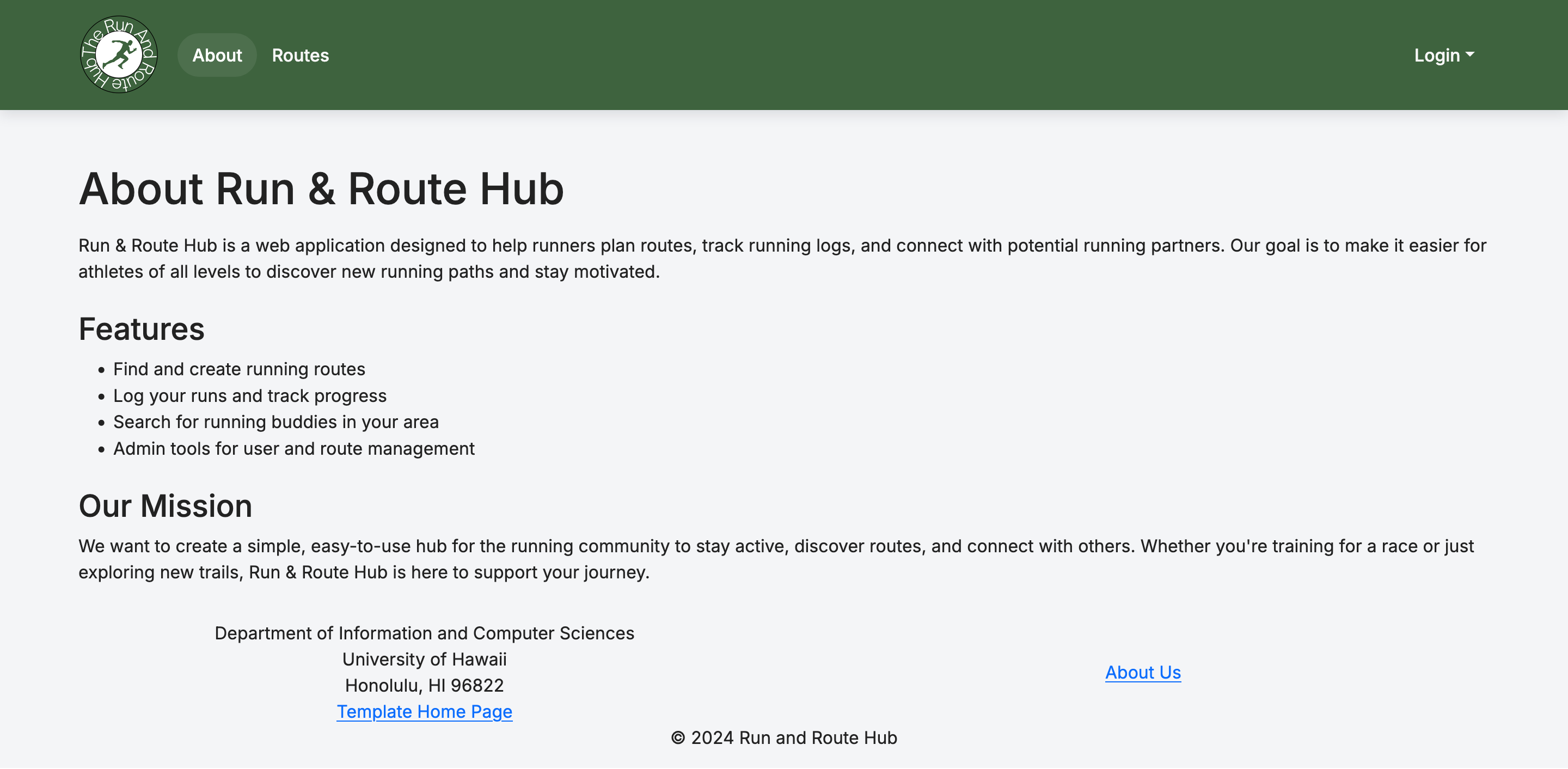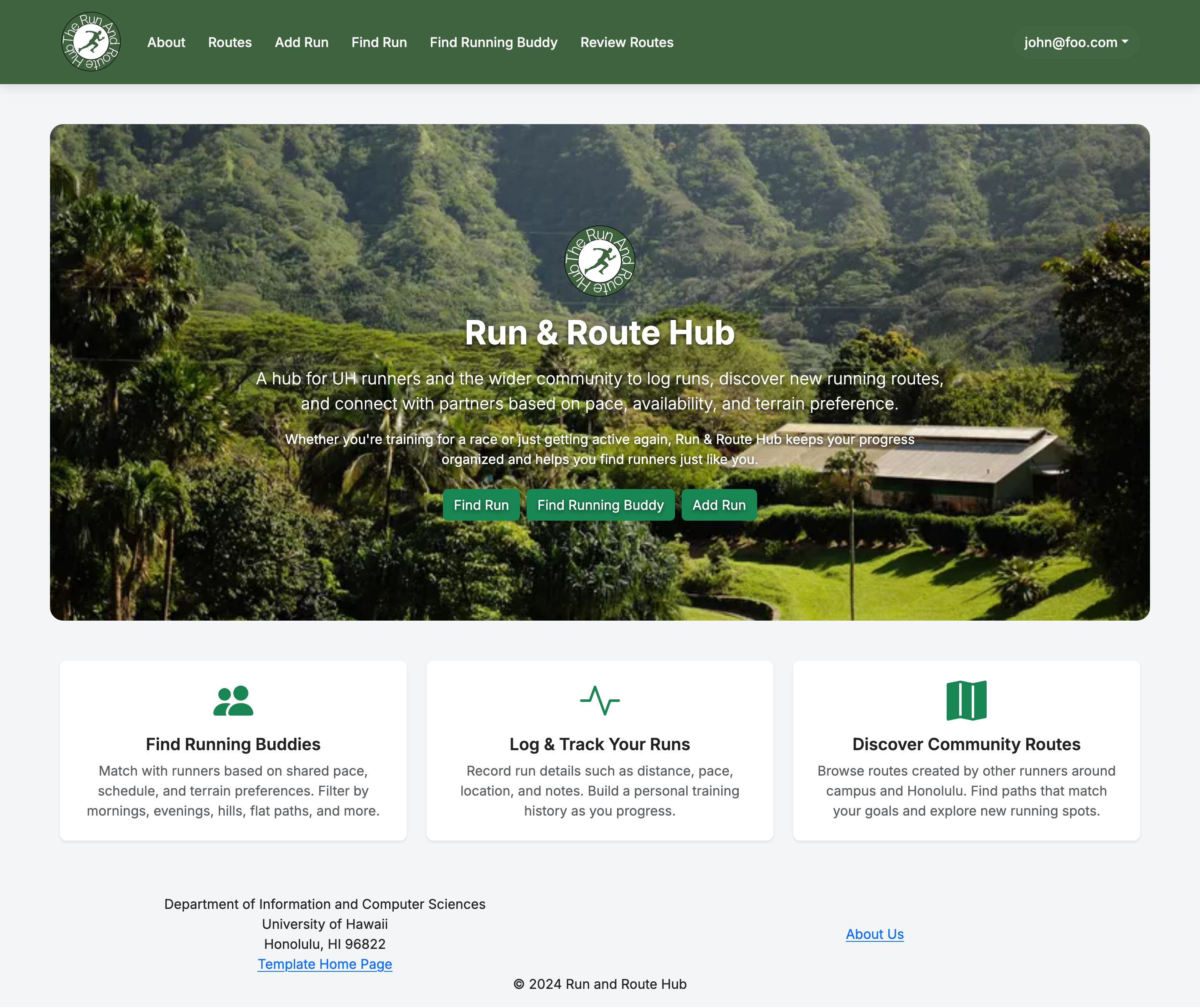 Run & Route Hub is a running-focused web app for UH students that helps runners: